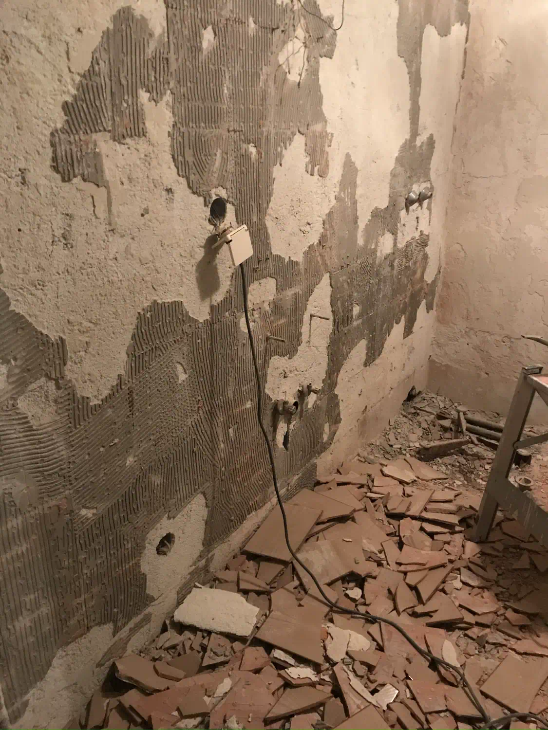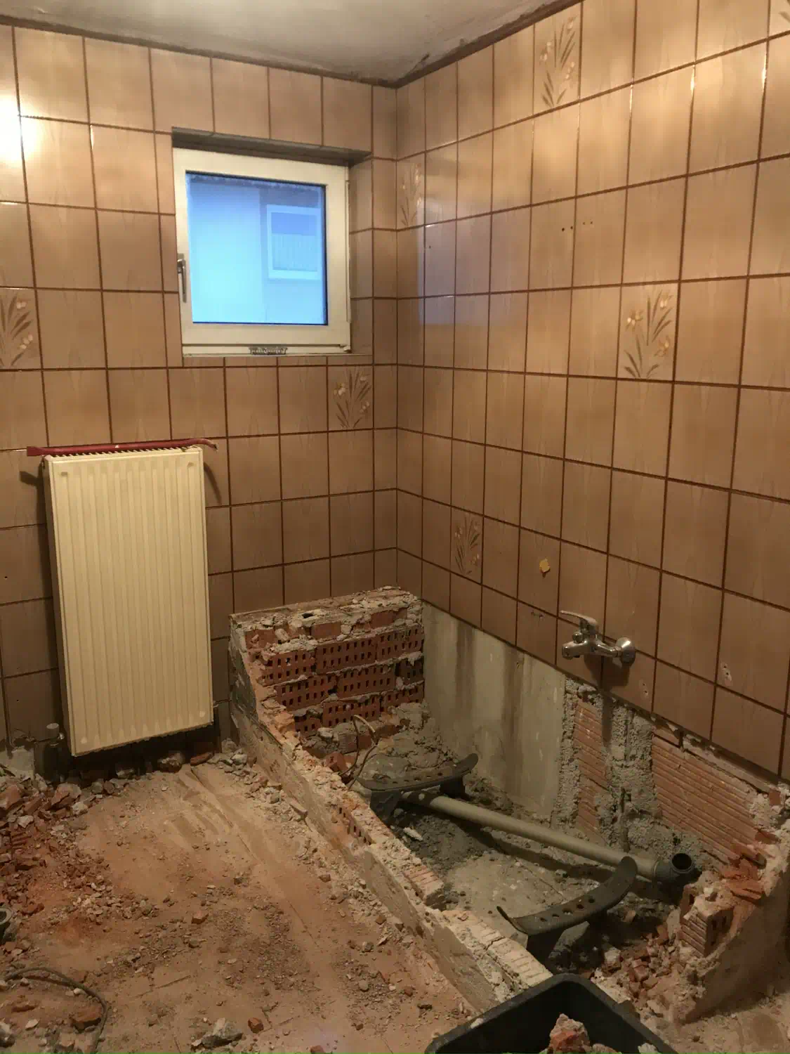Das Badezimmer wurde komplett kernsaniert und die bestehende Einrichtung demontiert.