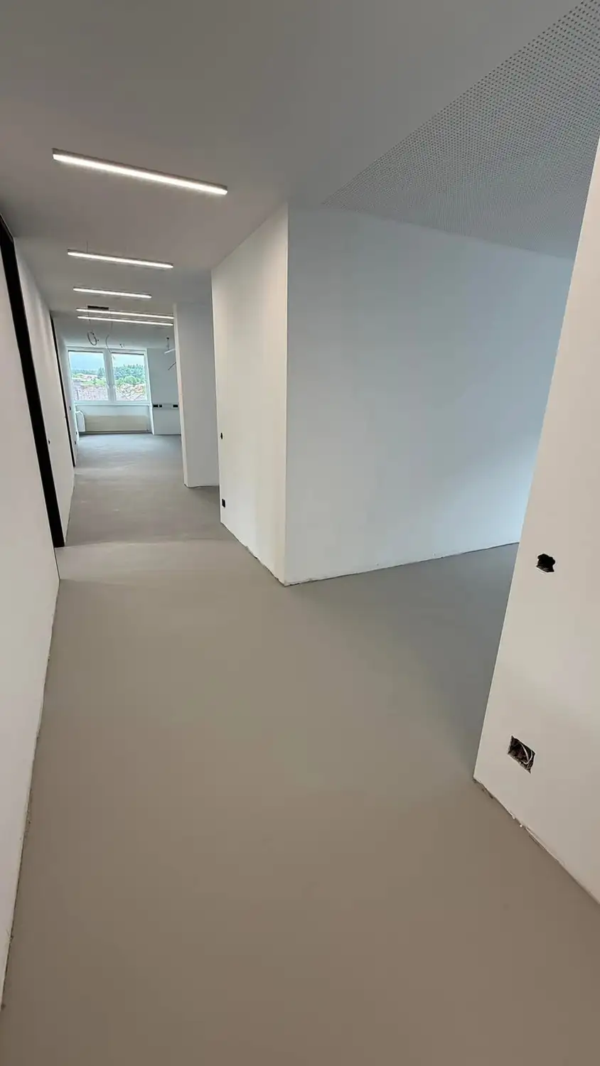 Durch das Verschieben von Wänden entstand eine optimierte Raumaufteilung, ergänzt durch eine moderne Akustikdecke für angenehme Arbeitsbedingungen.