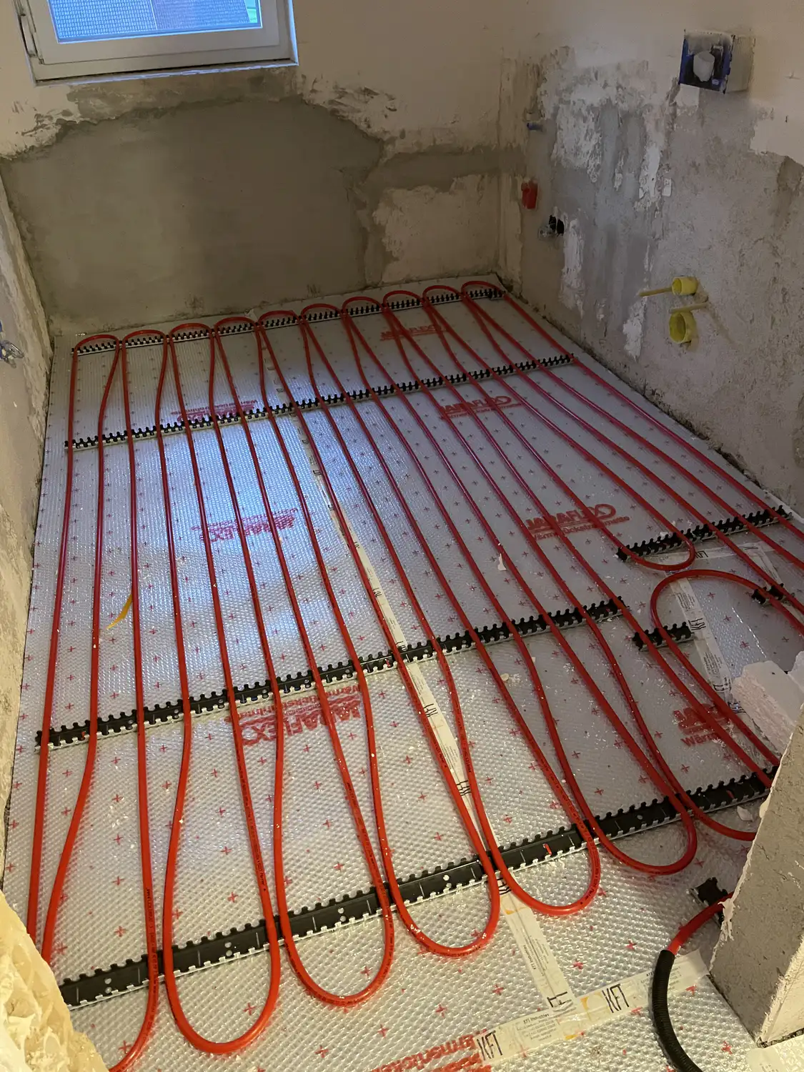 Auch die Wasserinstallation und die neue Fußbodenheizung wurden integriert.