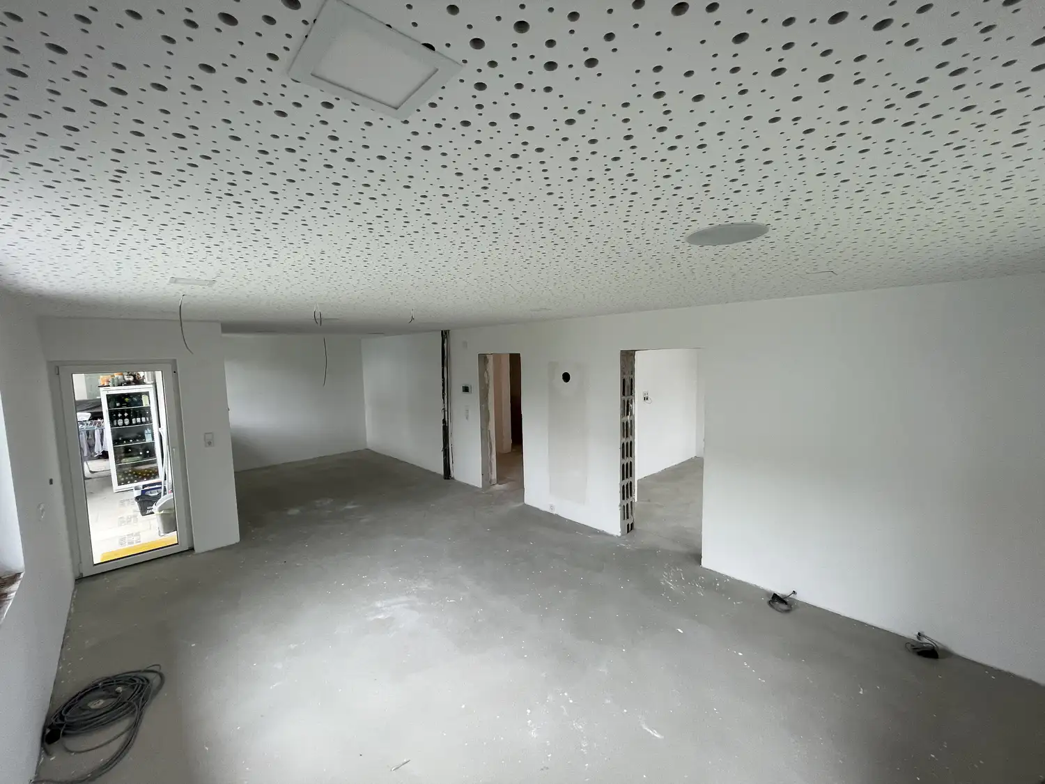 Nach der Elektro- und Heizungsmontage folgten Estricharbeiten, eine umfassende Wandsanierung samt Verspachtelung sowie die Installation einer modernen Akustikdecke.