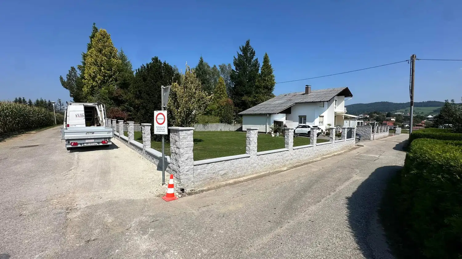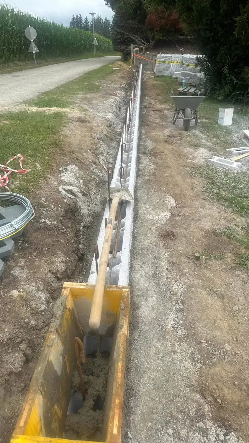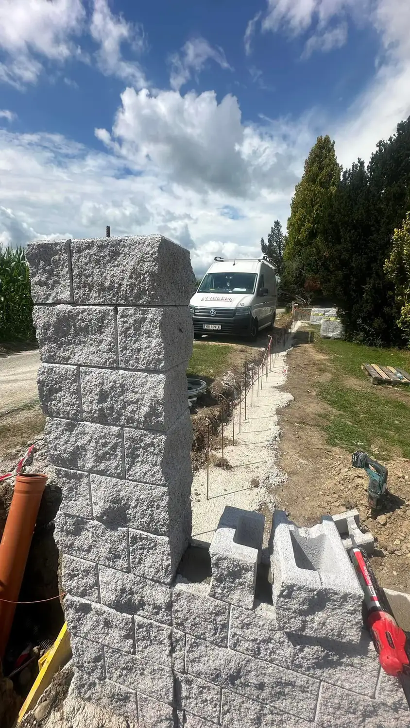 Nach den Grabungsarbeiten wurden die Fundamente fachgerecht betoniert und anschließend Dekorsteine gesetzt.